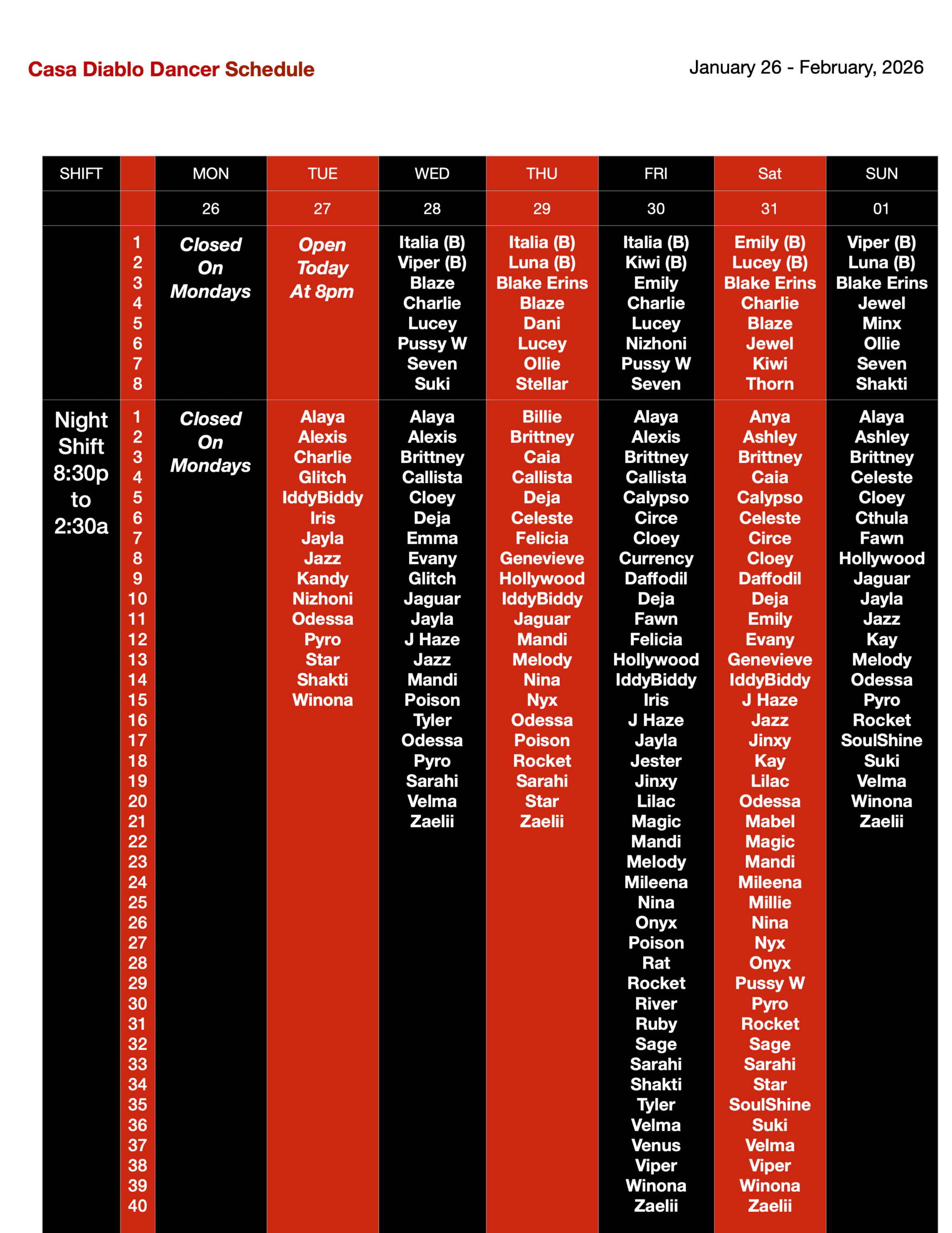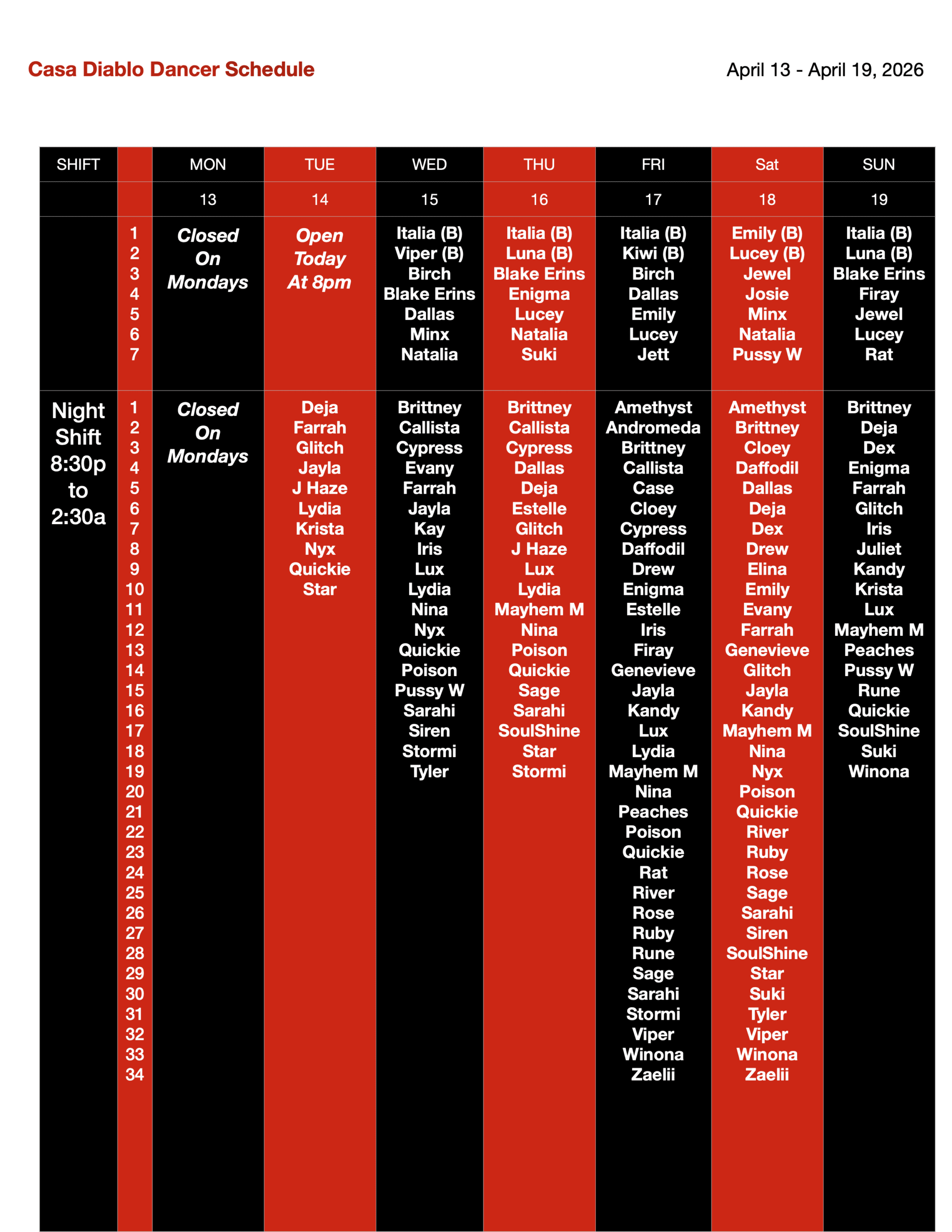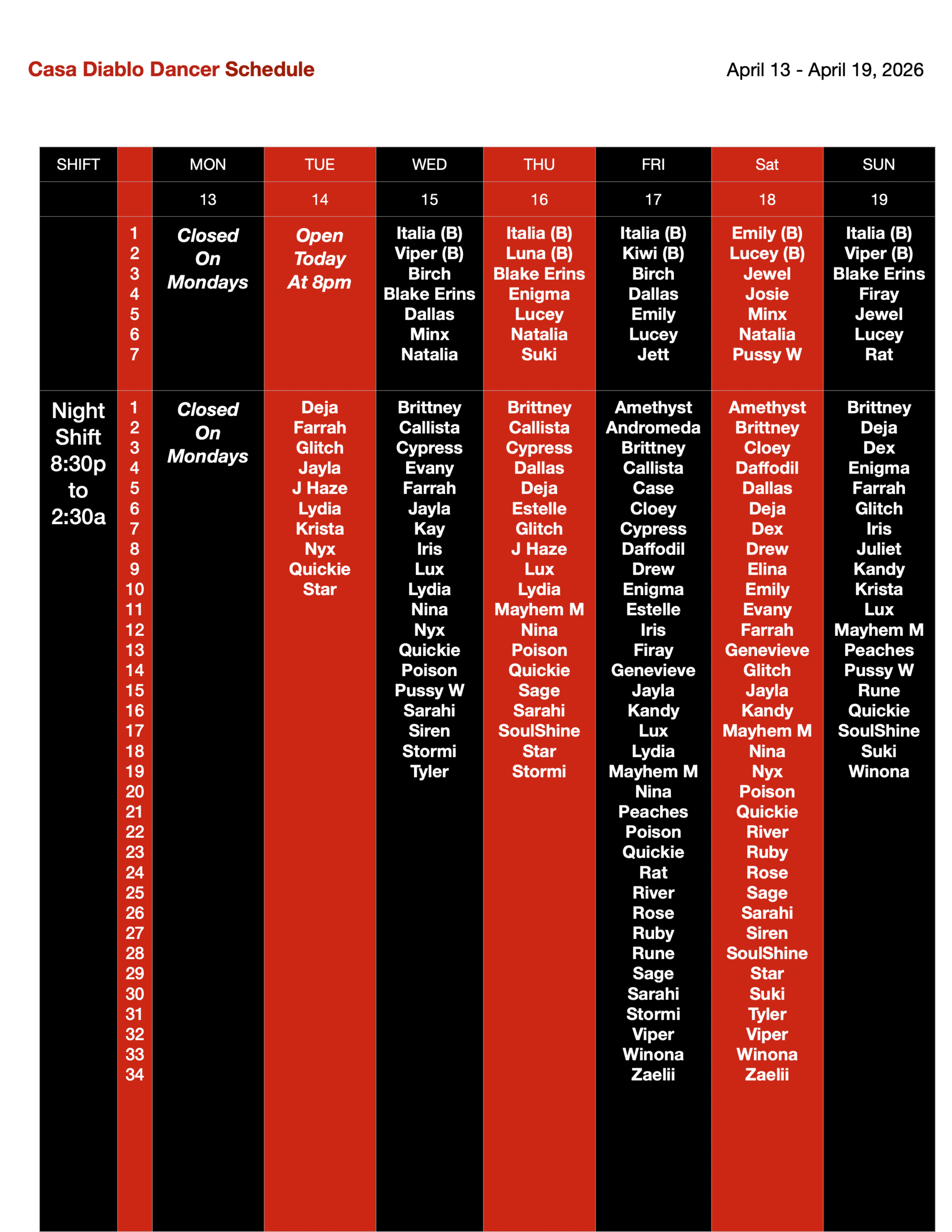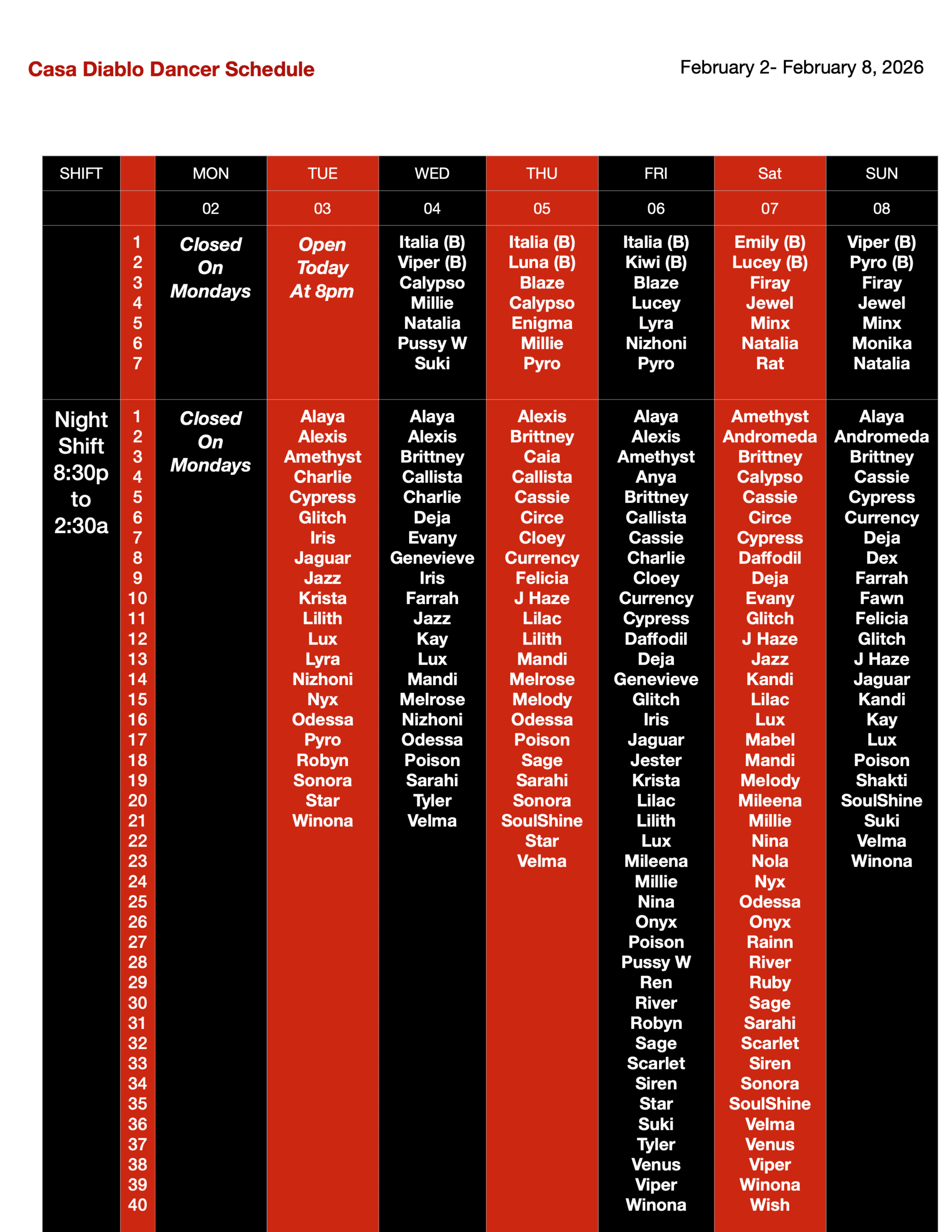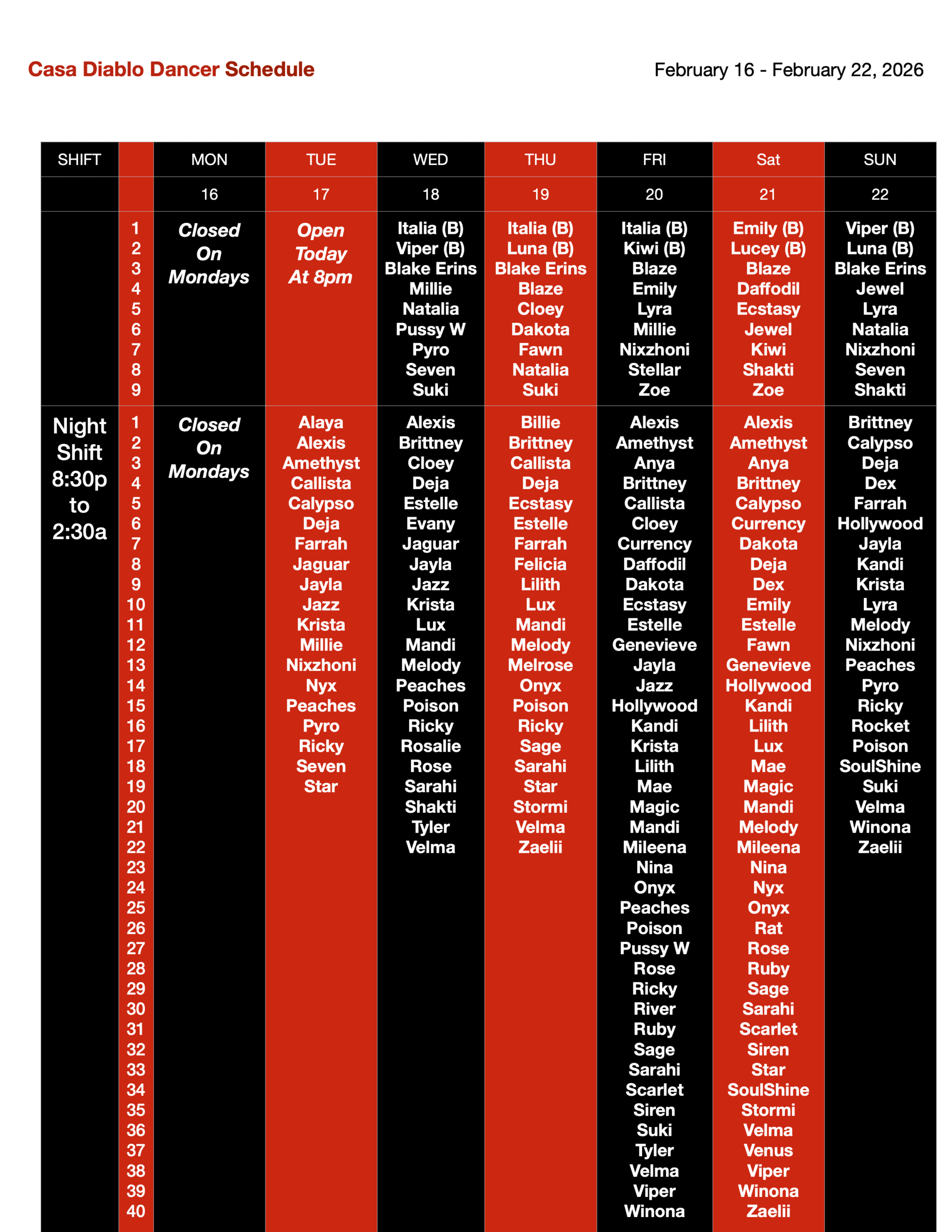 Always hiring Cooks, Bar Backs & Security! Bartender positions must first be dancers. Click to apply!
