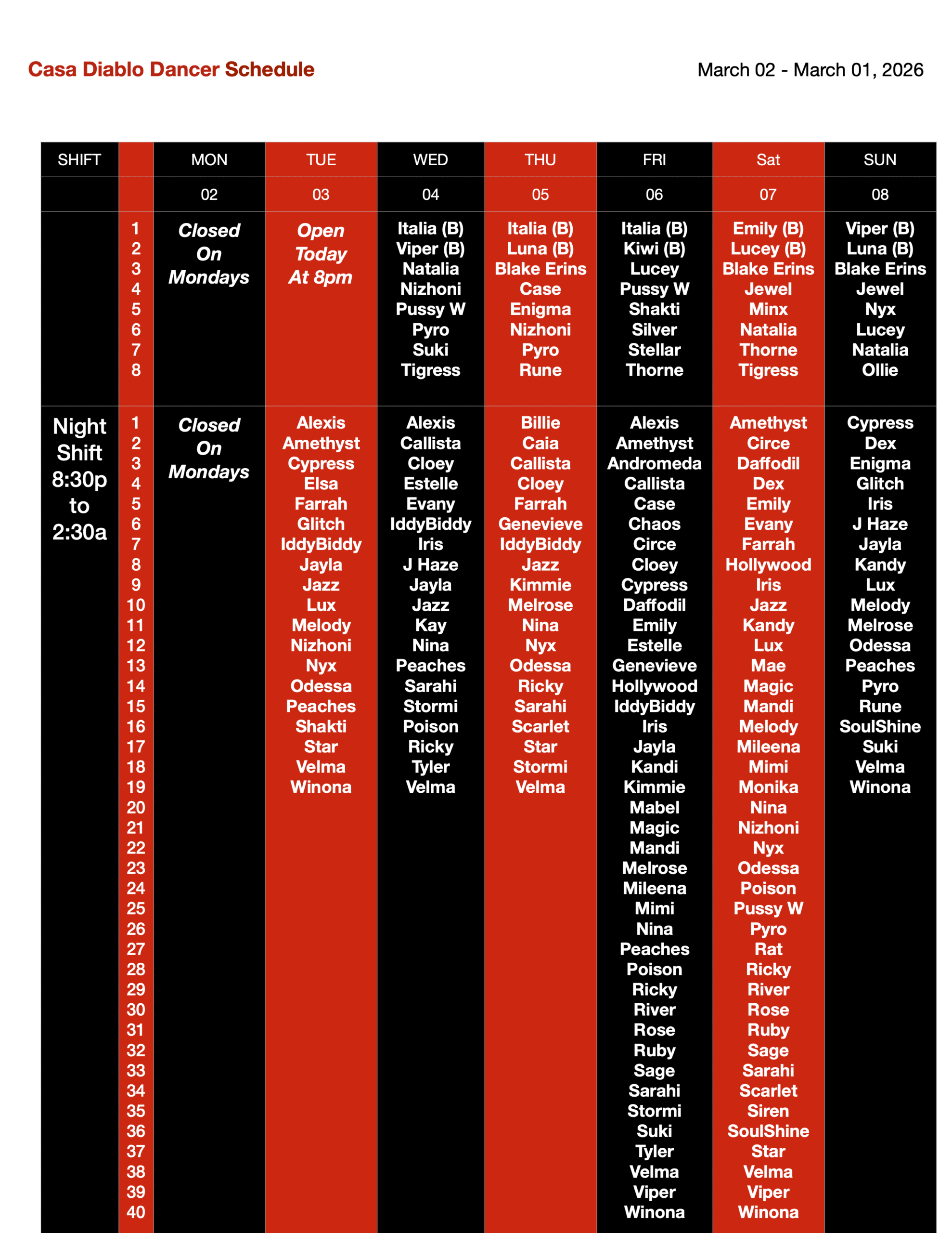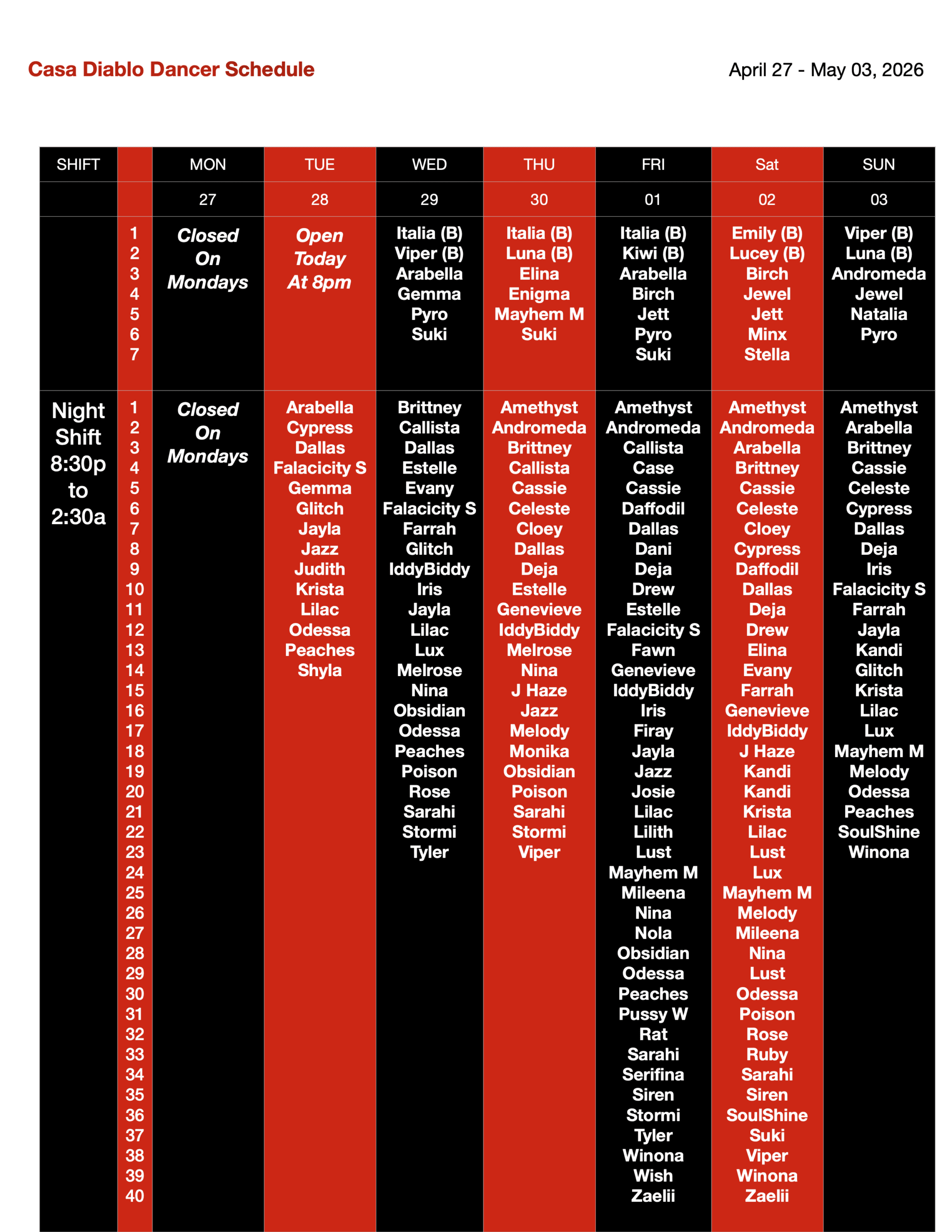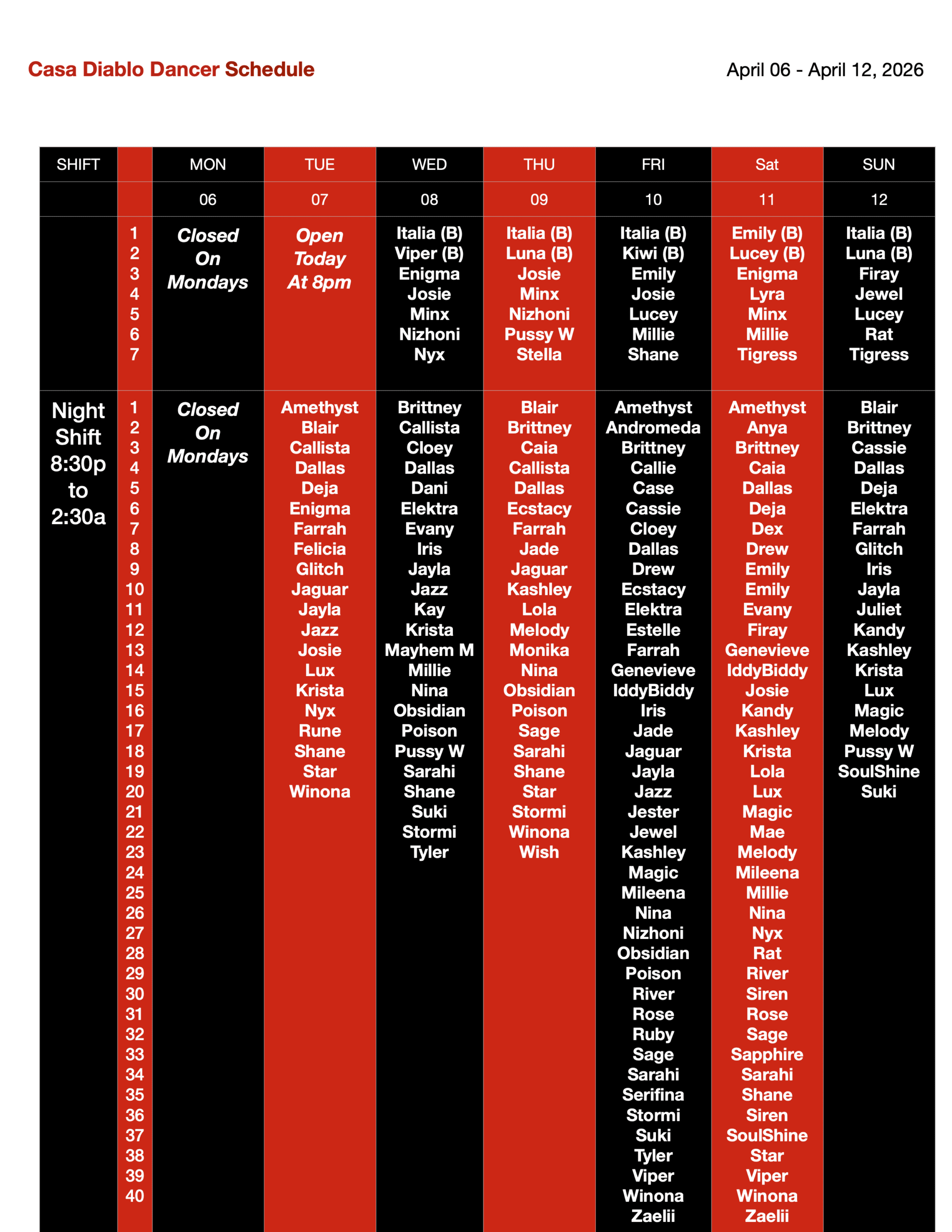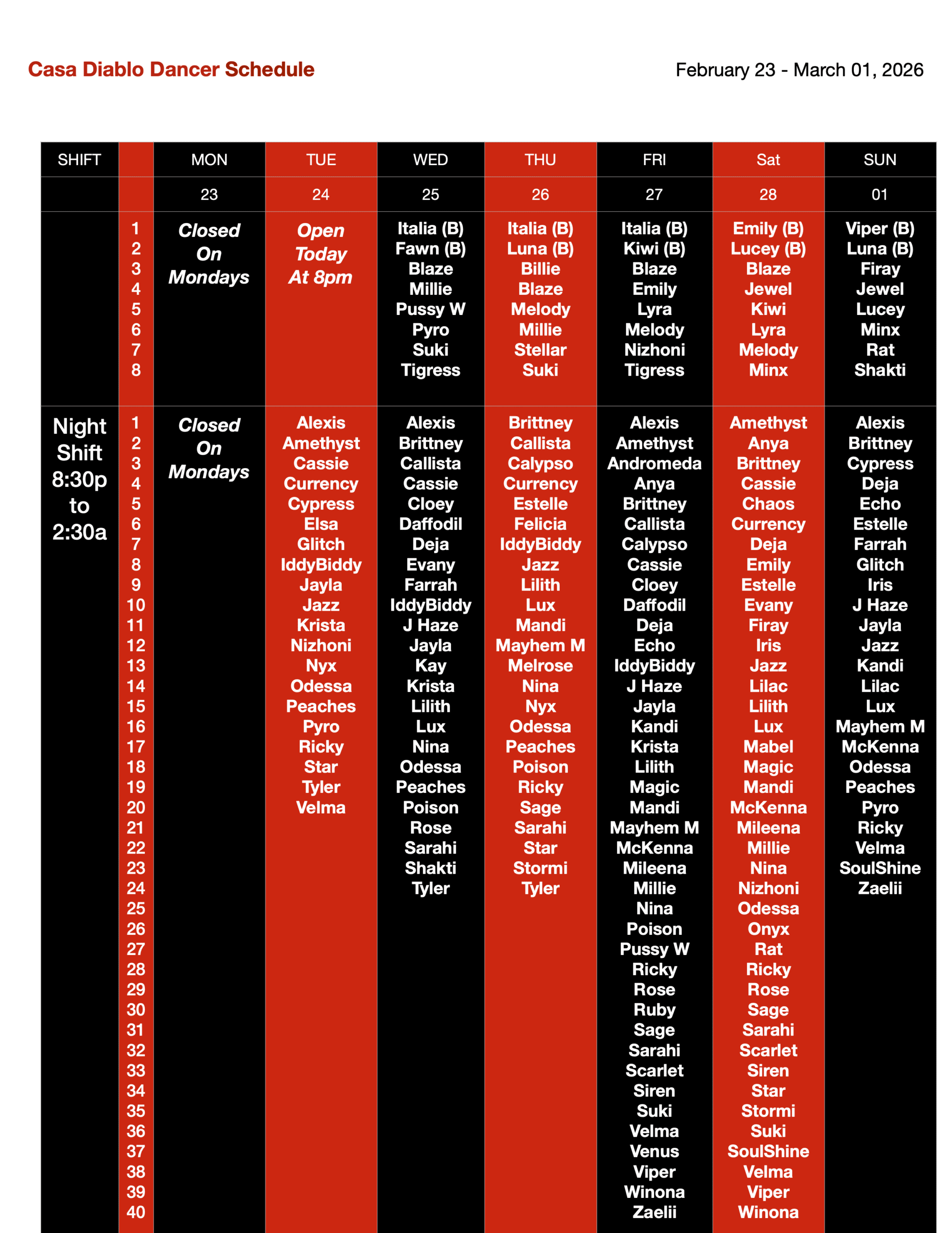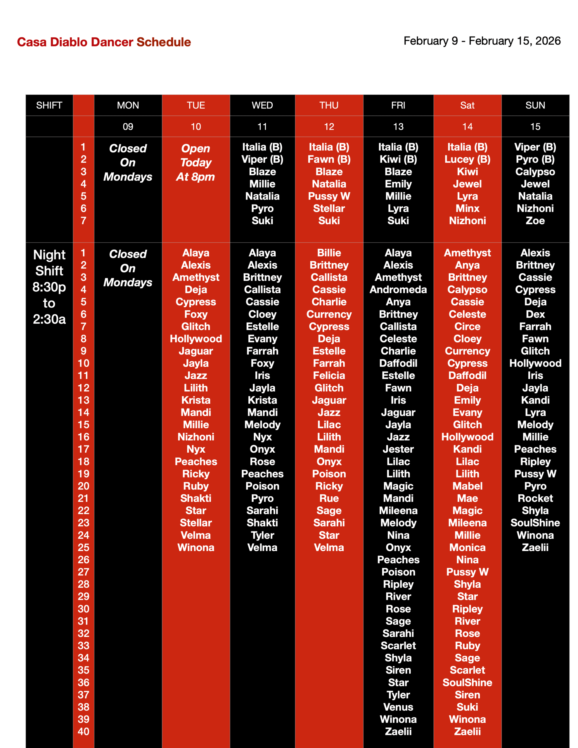 Always hiring Cooks, Bar Backs & Security! Bartender positions must first be dancers. Click to apply!